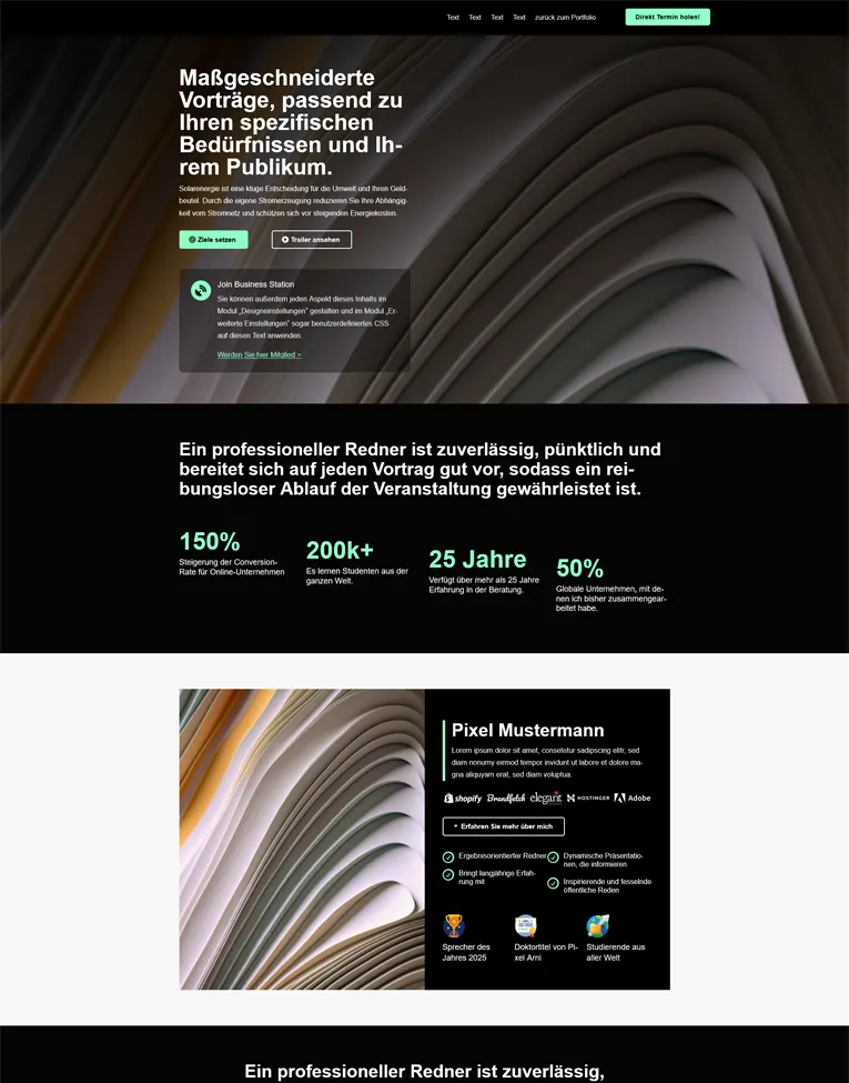 Neben individuellen Angeboten biete ich auch zahlreiche Mustervorlagen an, mit denen du schnell und unkompliziert zu deiner eigenen Landingpage kommst. Dank vorkonfigurierter Layouts sind alle Grundeinstellungen bereits erledigt – du musst nur noch deine Inhalte liefern und einen Webspace bereitstellen. Schon geht deine Website online!